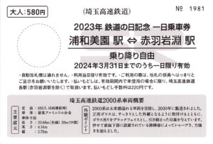 埼玉高速鉄道-2023年鉄道の日記念一日乗車券
