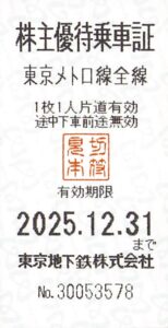 東京メトロ-株主優待乗車証